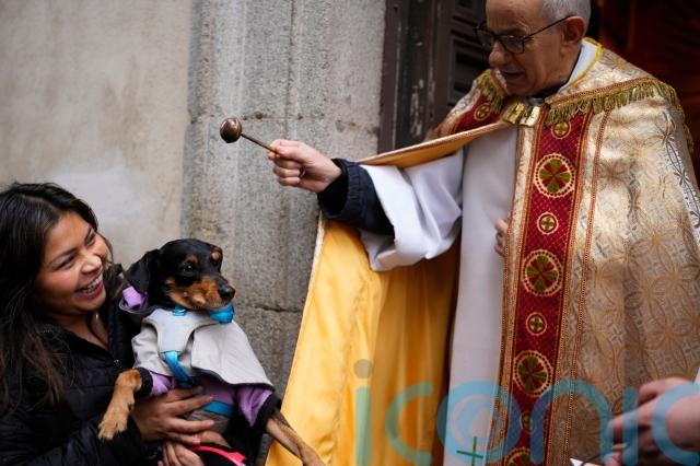Pet owners waited patiently on Saturday outside the entrance of St Anthony’s church in central Madrid, where Catholic priests blessed the passing animals. Many of the dogs were wrapped in winter vests, while the cats looked a little more bewildered.