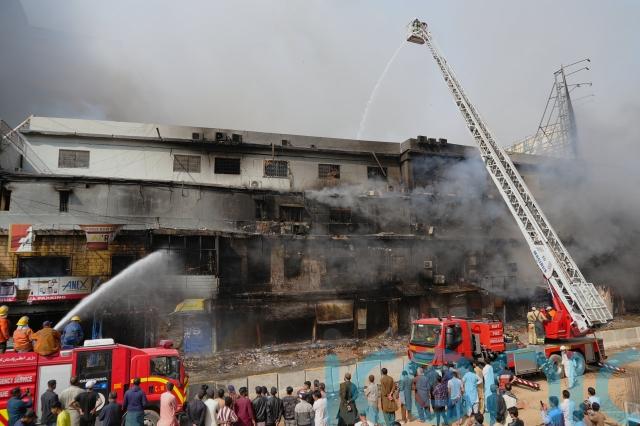 The fire broke out late on Saturday and spread quickly through shops storing cosmetics, garments and plastic goods, said Dr Abid Jalal Sheikh, the city’s chief rescue officer.
