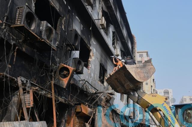 Firefighters extinguished the blaze at the multi-storey Gul Plaza late on Sunday nearly 24 hours after it erupted, allowing rescue teams to enter the building to rescue those trapped there.