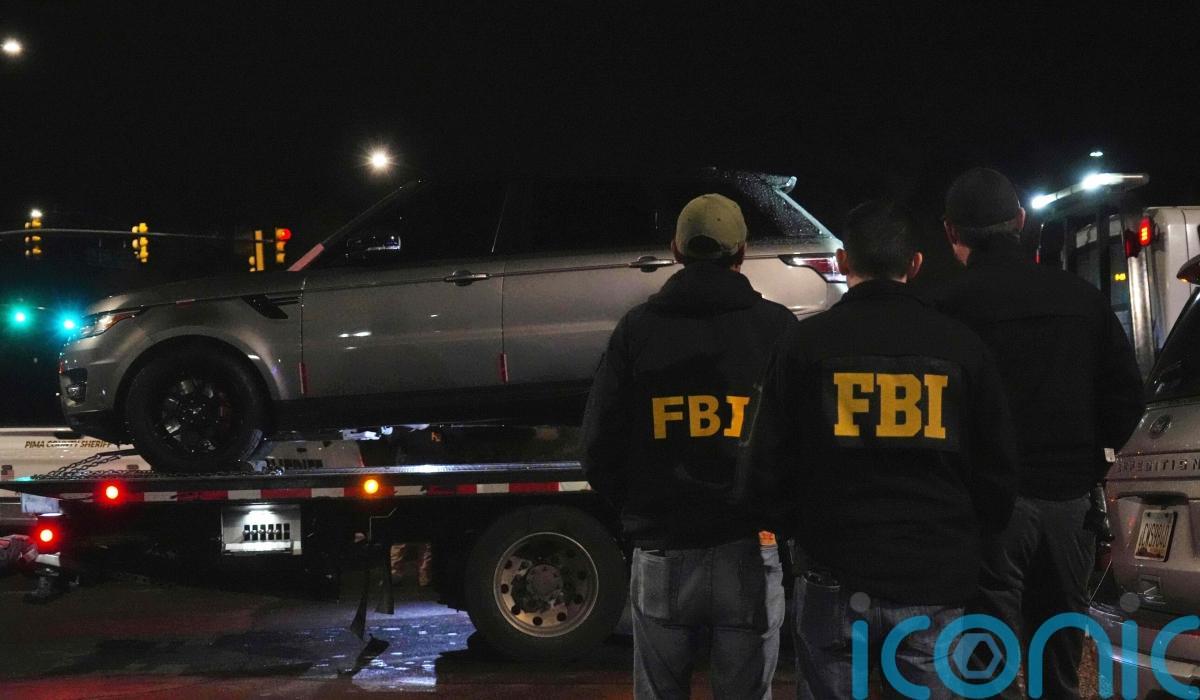 A parade of sheriff’s and FBI vehicles, including forensics vehicles, passed through the roadblock that was set up about two miles from the house.