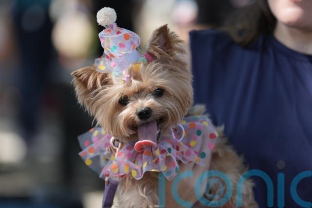Dozens of dogs in fancy dress gathered at a carnival street party as their owners protested against cruelty to pets.