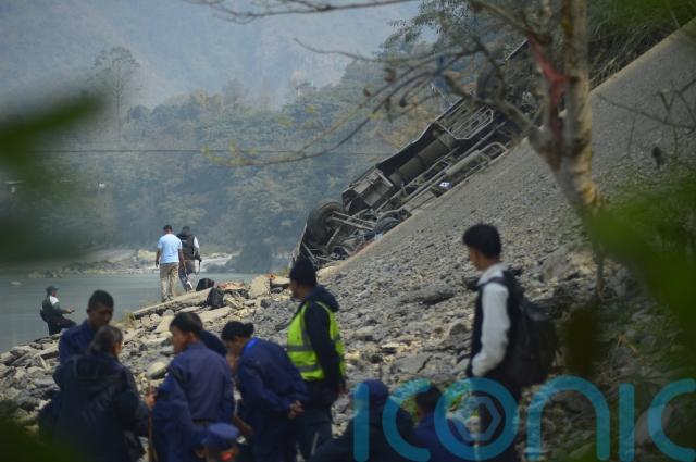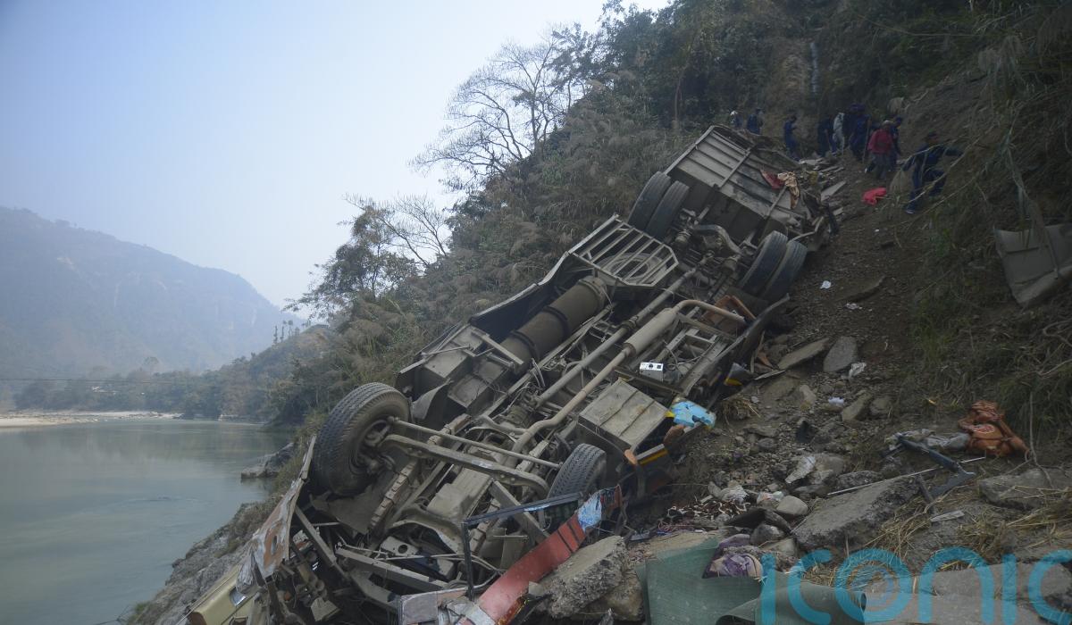 A packed bus on its way to Nepal’s capital has driven off a mountain road in Nepal, killing 19 people including a British national and leaving another 25 wounded.