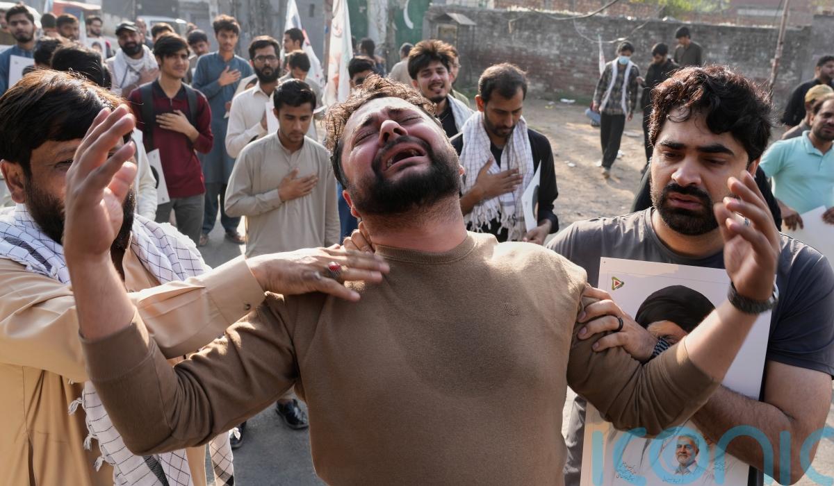 Some wailed in mourning while carrying Mr Khamenei’s portrait.