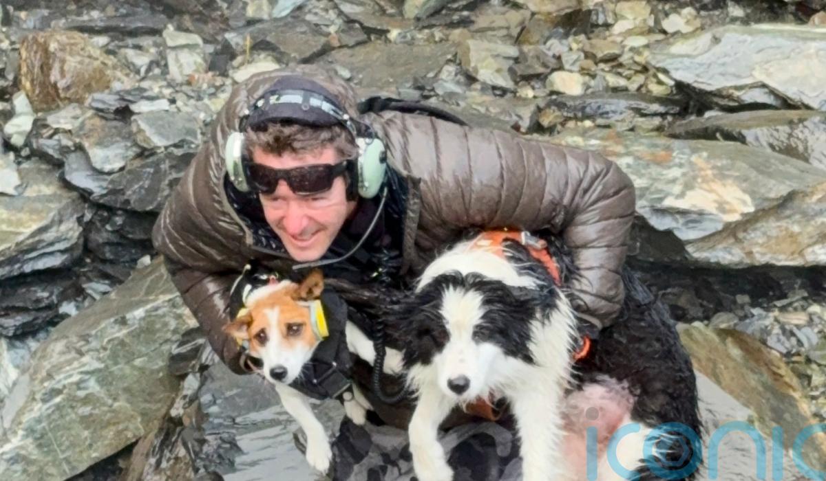 The helicopter dropped low enough for a volunteer to disembark with the rescue dog Bingo to help coax Molly to safety and keep her calm.