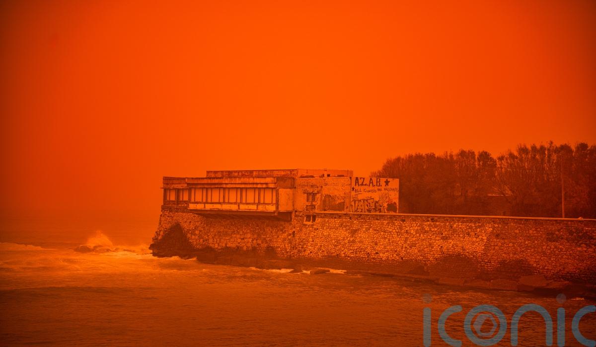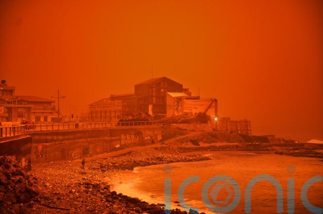 The sky’s surreal red hues were reminiscent of apocalyptic scenes over Crete where the storm that hit the island with gale-force winds combined with a Saharan dust storm.