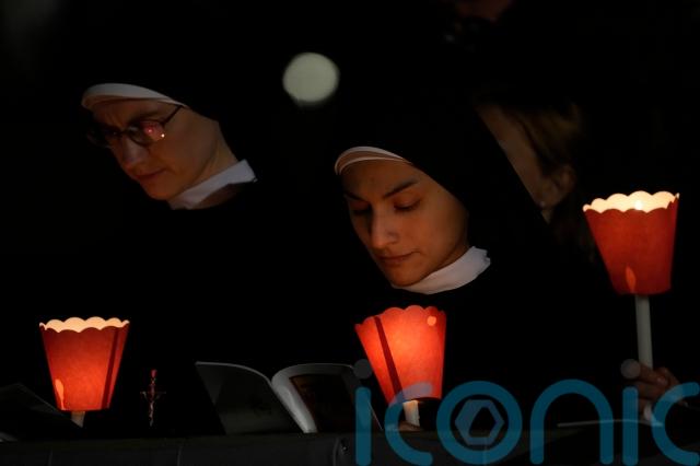 Some 30,000 faithful gathered outside the pagan monument, following the stations as they were recited over loud speakers.