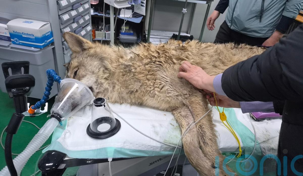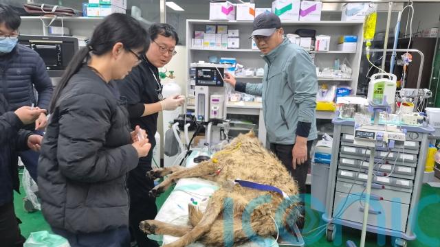 Daejeon officials released social media videos showing rescuers pulling the limp wolf from a ditch and placing it in a carrier, and the animal undergoing medical examinations at the zoo.