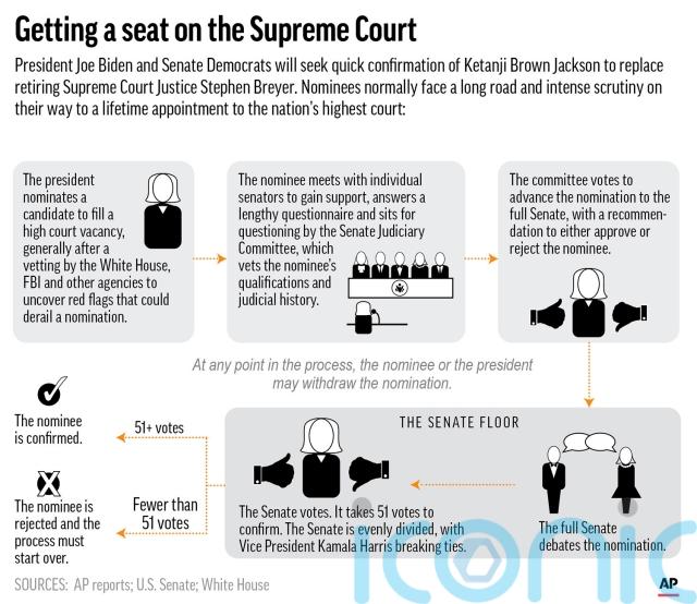She would replace liberal Justice Stephen Breyer, 83, who is retiring at the end of the term this summer, so she will not change the court’s 6-3 conservative majority.