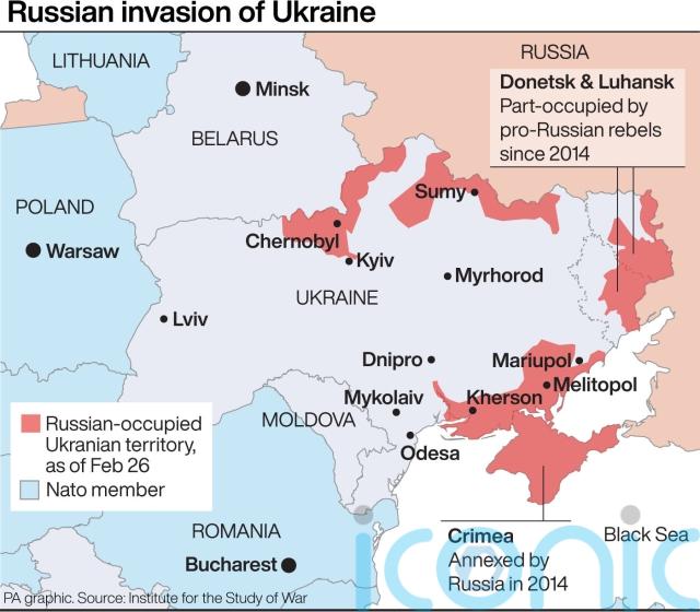 Mr Putin sent troops into Ukraine after denying for weeks that he intended to do so, all the while building up a force of almost 200,000 troops along the countries’ borders.
