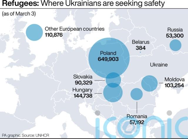 Its data portal on Ukraine showed that the majority, about 650,000, had gone to neighbouring Poland, and roughly 145,000 had fled to Hungary.