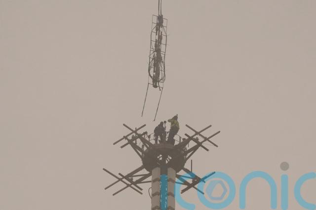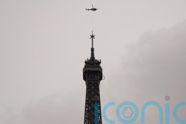 Tourists watched from the Trocadero esplanade as the new digital radio antenna was taken up by helicopter.