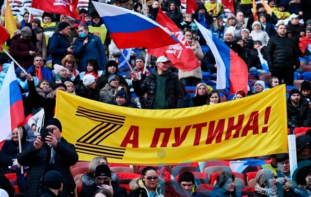Video feeds of the event showed a loudly cheering, flag-waving crowd that broke into chants of “Russia!”