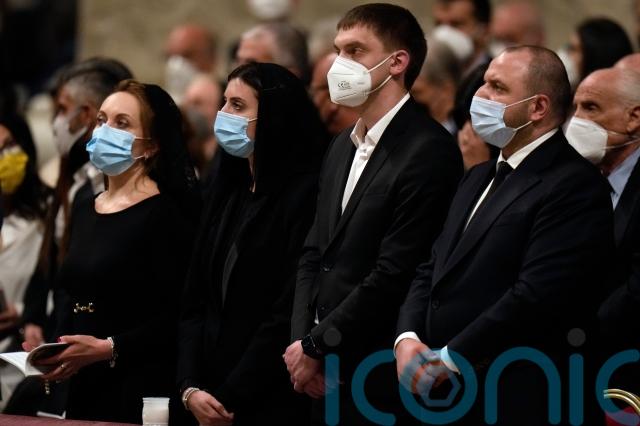 He instead sat in front of the altar on a wooden upholstered chair in white robes. Cardinal Giovanni Battista Re said the Mass instead.