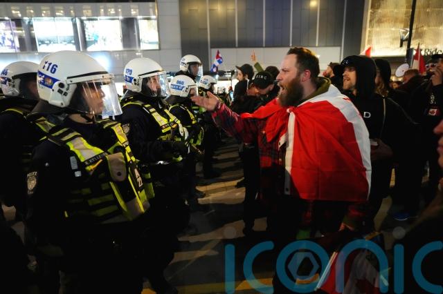 Police wearing helmets and shields made several arrests in Canada’s capital after facing off against protesters opposed to Covid-19 mandates.