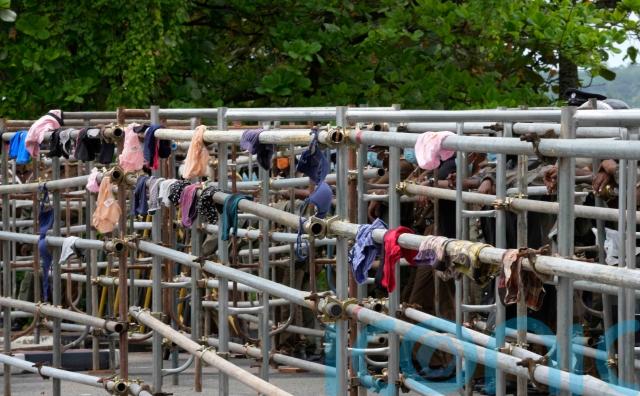 Protesters also hung undergarments by a road leading to parliament and chanted: “This is all we are left with!”