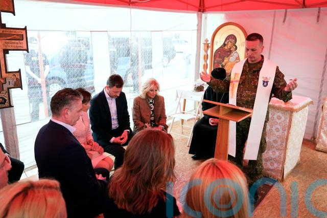 Mrs Biden attended a religious service in a tent set up as a chapel, where a priest intoned: “We pray for the people of Ukraine.”