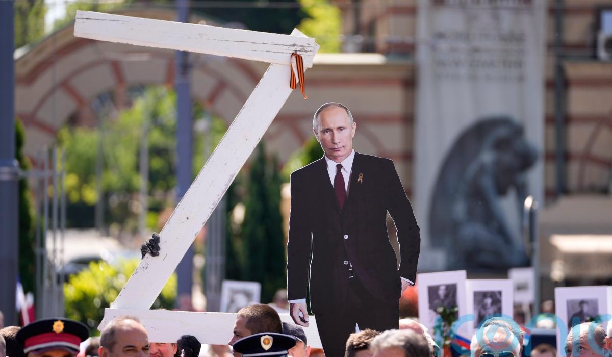 Marchers carried a cardboard figure of Russian President Vladimir Putin and a big ‘Z’ sign symbolising support for the Russian invasion of Ukraine.