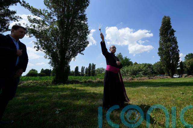 He recited the Rosary and used holy water to bless a field in front of the St Martin Olearo di Mediglia church.