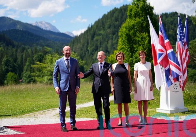Mr Biden and the leaders of the UK, Canada, France, Germany, Italy and Japan, plus the EU, were spending Sunday in both formal and informal settings, including working sessions on the war’s effects on the global economy, including inflation, and on infrastructure.