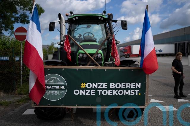 Dutch farmers angry at government plans to slash emissions have used tractors and lorries to blockade supermarket distribution centres.