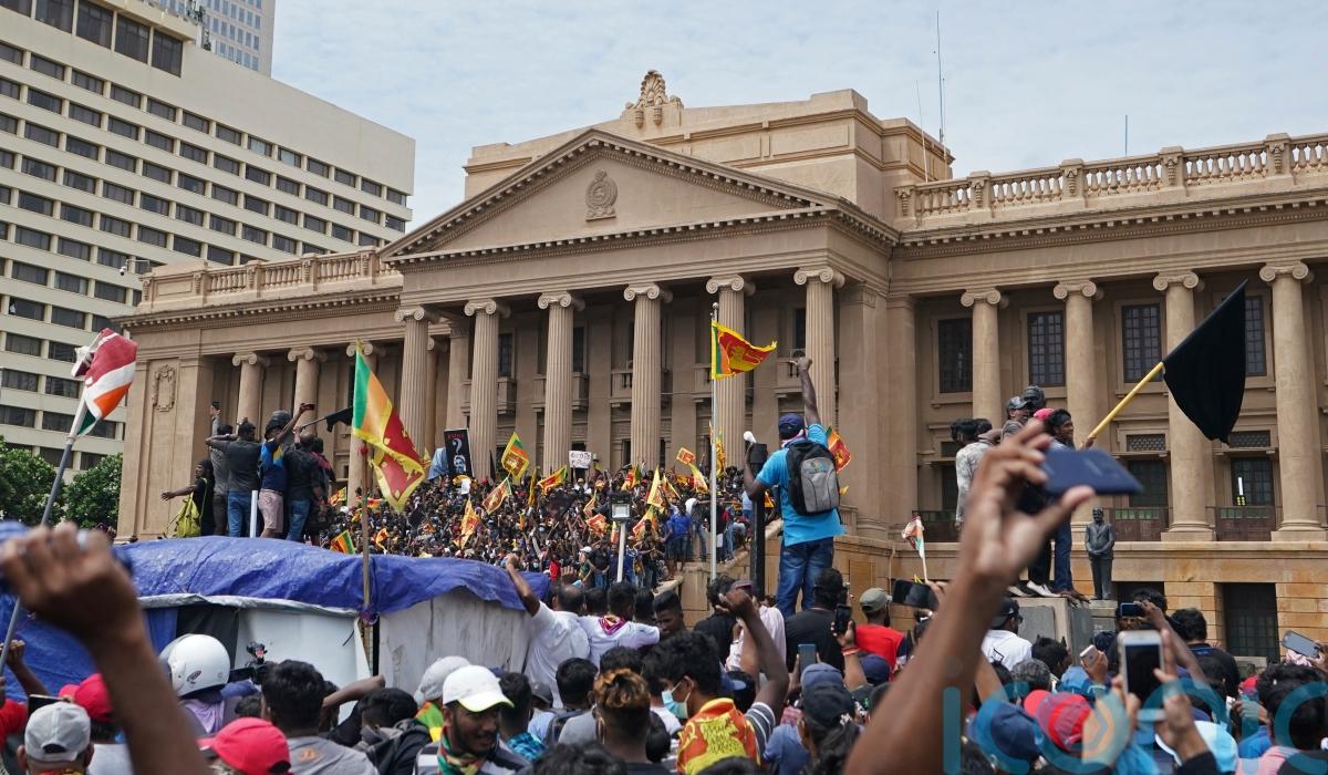 Video posted on social media showed hundreds of protesters running into the president’s residence, chanting “Gota go home”, calling the president by his nickname. Outside the building, barricades were overturned.