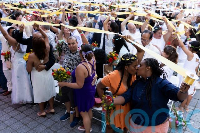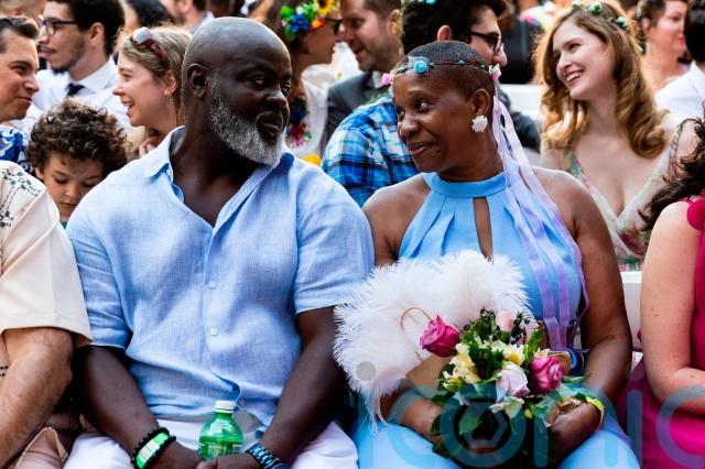 The Lincoln Centre for the Performing Arts hosted Celebrate Love: A (Re)Wedding for 500 couples on Sunday evening in a pavilion outside the site.