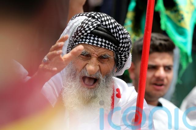 Mr Al-Sadr’s representative Sheikh Mahmoud al-Jiyashi read aloud a speech from the cleric during the service that reiterated calls to disband armed groups — an indirect reference to Iran-backed Iraqi militia groups affiliated with his rivals.