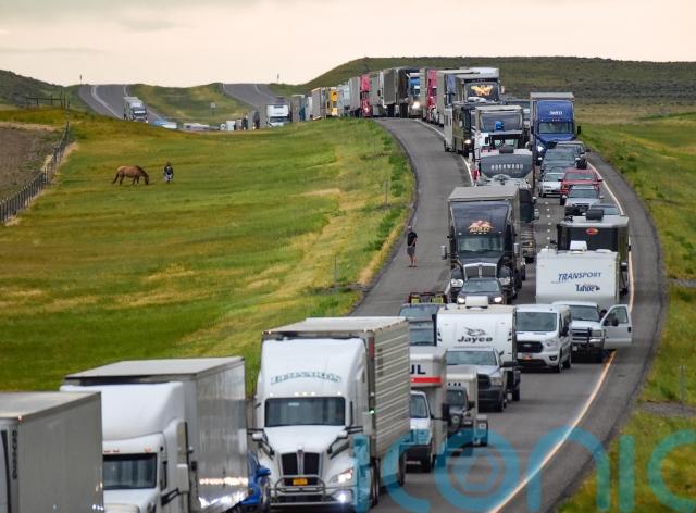 A video from the Billings Gazette showed hundreds of lorries, camper vans and cars backed up for miles along the two eastbound lanes of the road.