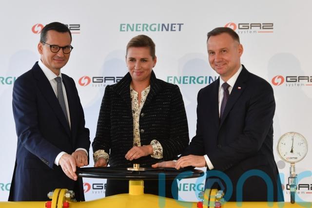 Ms Frederiksen, Mr Morawiecki and Polish President Andrzej Duda symbolically opened a valve on a yellow pipe belonging to the Baltic Pipe, a new system that will carry Norway’s gas across Denmark and the Baltic Sea to Poland.