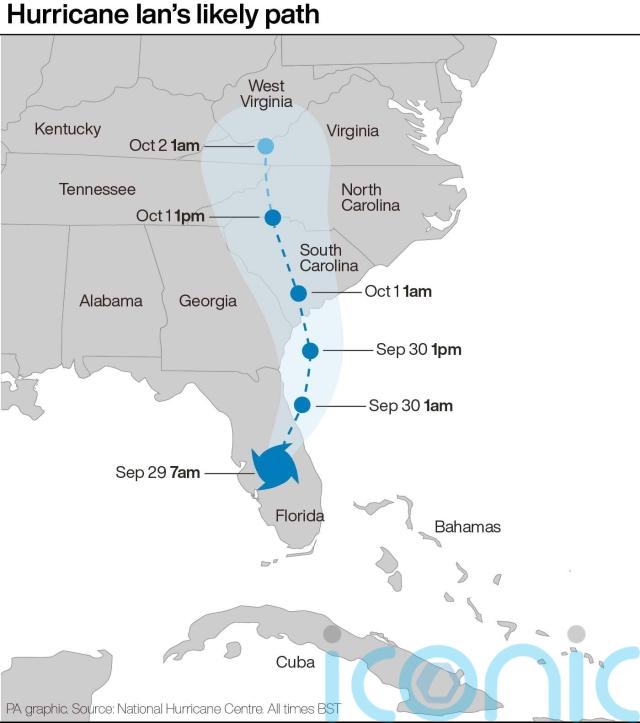 Even after weakening, Ian’s tropical-storm-force winds still reached 415 miles from its centre.