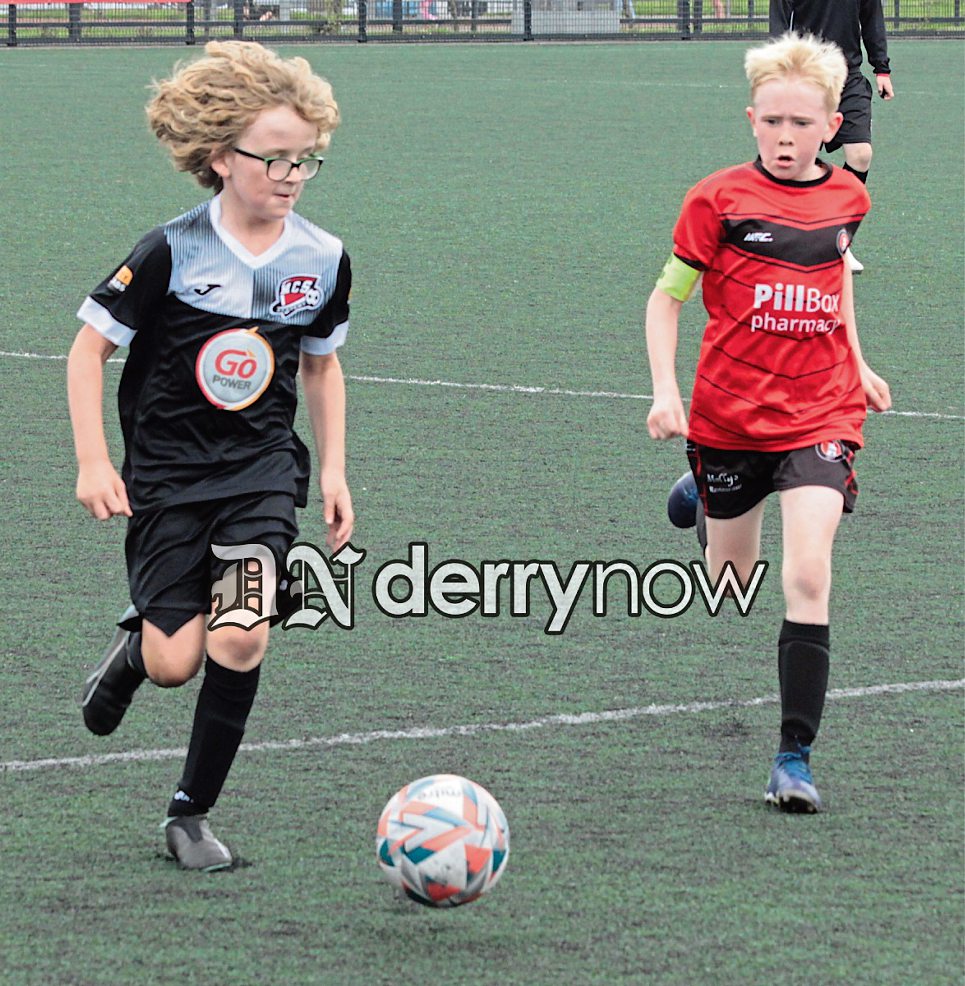 Action from the Maiden City v Irvinestown Wanders Colts U9 match at Bishop's Field.