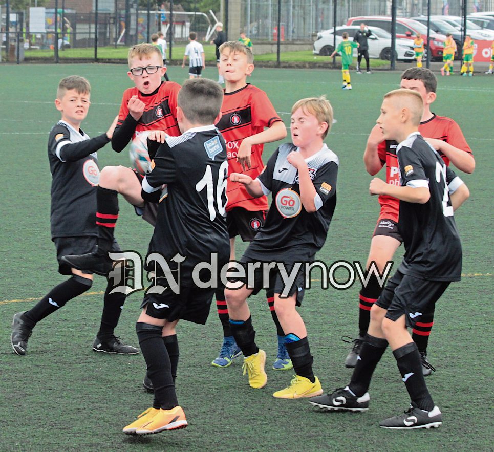 Action from the Maiden City v Irvinestown Wanders Colts U9 match at Bishop's Field.