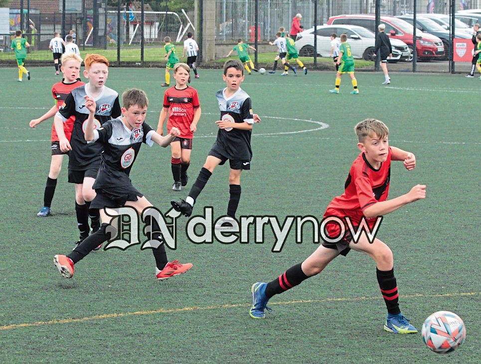 Action from the Maiden City v Irvinestown Wanders Colts U9 match at Bishop's Field.