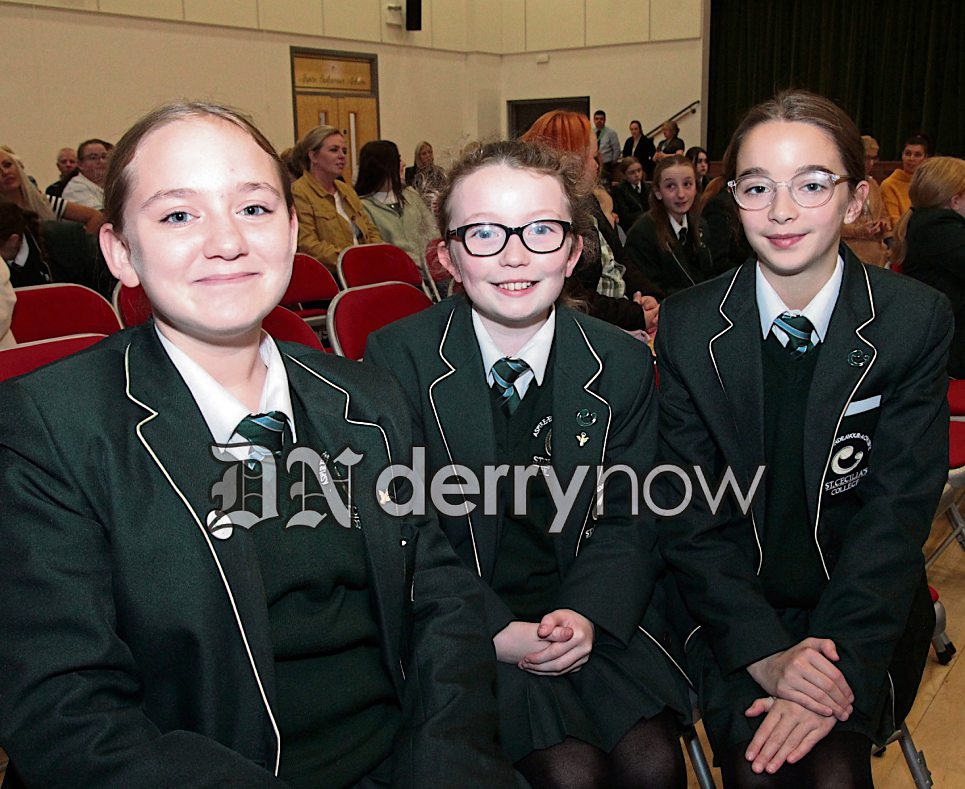 Isabella Gillen, Clara Molloy and Cora Prenter pictured at their Year 8 Mass held in the College.