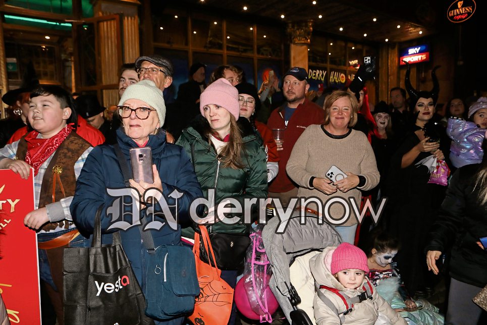 Some of the thousands of spectators lining the route of the Derry Halloween parade.