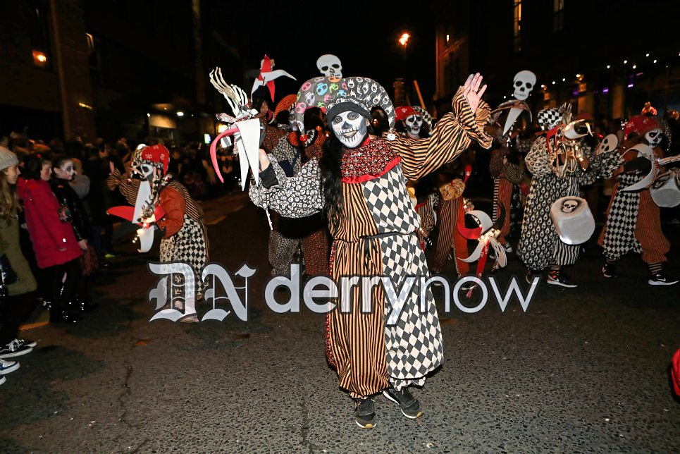 The Derry Halloween parade making its way to the Foyle Embankment.