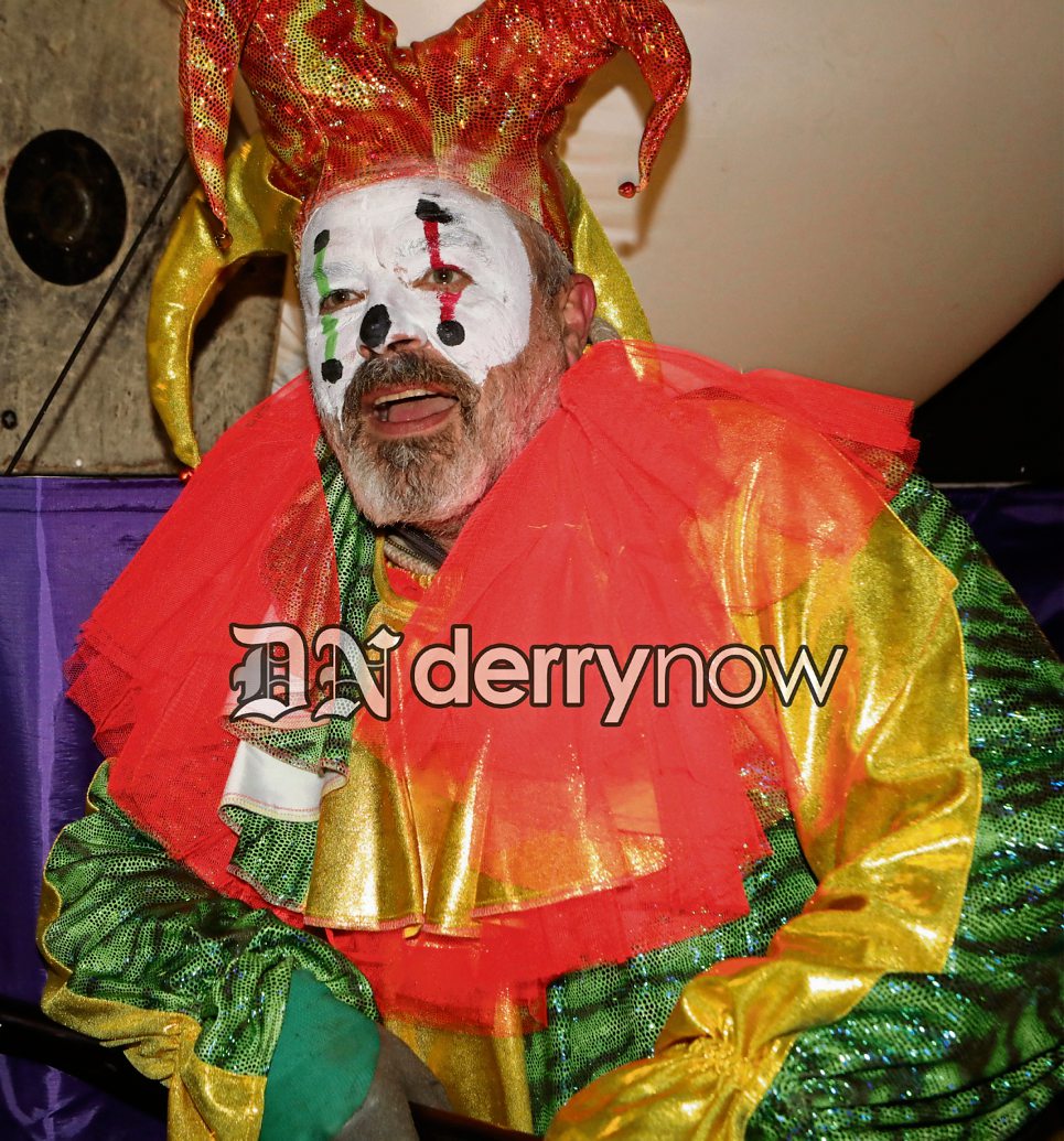 A very sad and tired looking jester at the Halloween parade.