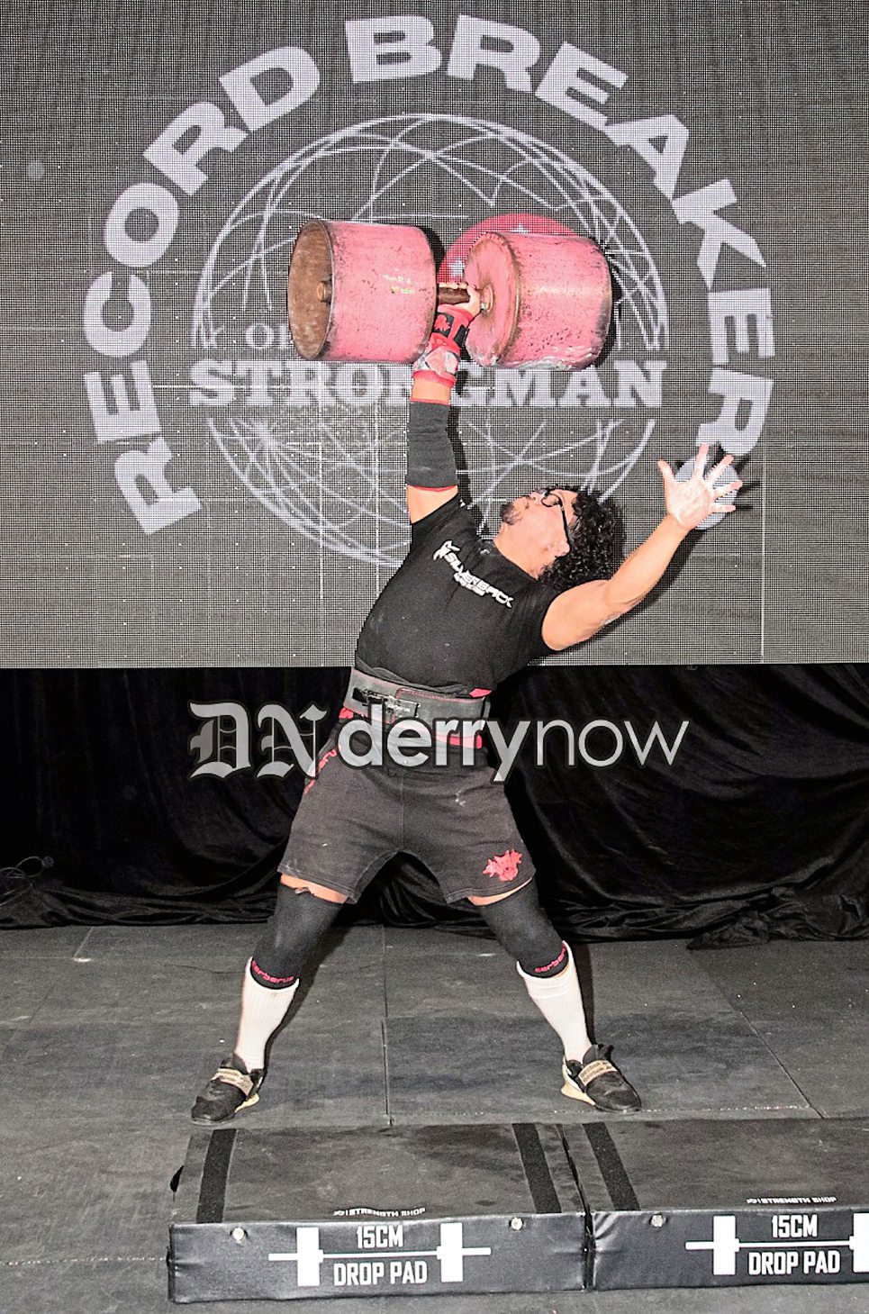 Daniel Mamahit from The Netherlands pictured at the event as he attempts to break the weight lifting record.