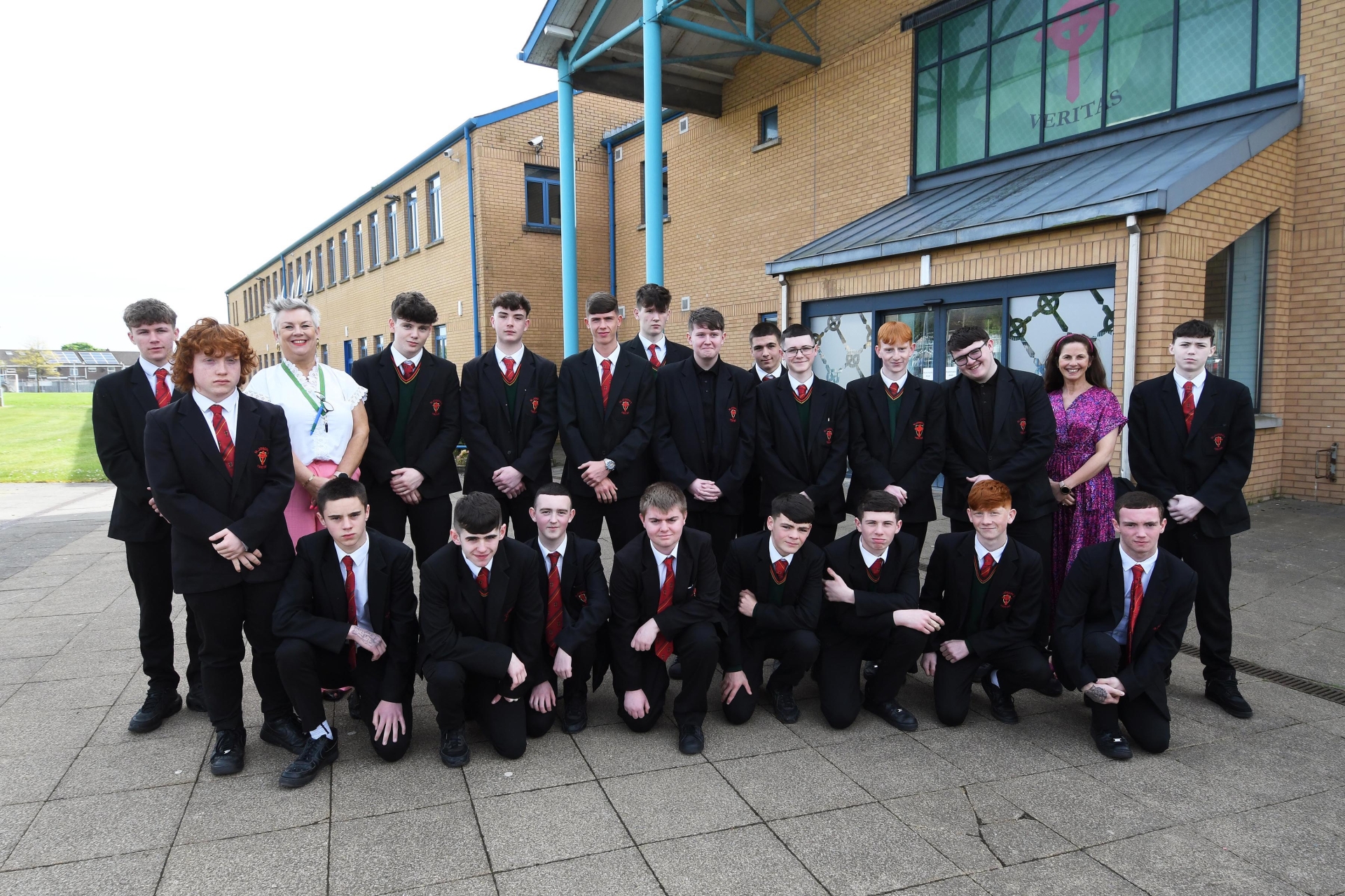 A group of the Year 12 Leavers pictured at St. Joseph's Boys School with Mrs. Shauna Wilkinson, Classroom Assistant and Mr.s Ciara McGinley, teacher.