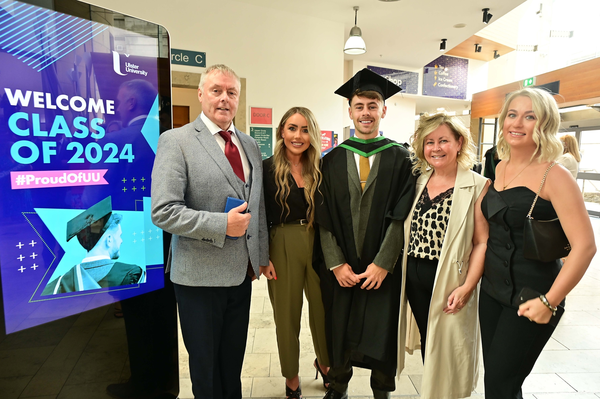 If you can dream it, you can achieve it. Ryan Brolly from Ballymoney graduates from Ulster University Derry in BSc (Hons) Sport, Physical Activity and Health, pictured alongside his family from L to R: Dad David, Sister Nicolle, Ryan, Mum Maxine and Girlfriend Adeina Lucas.