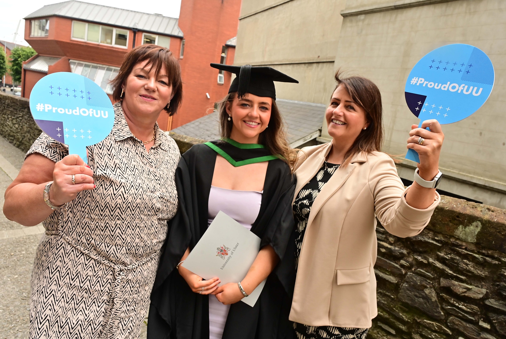 Graduating on the same day as her mum did 27 years ago, Orla McMullan from Dunloy completes her course in BSc (Hons) Podiatry from Ulster University Derry alongside auntie Sinead Atkinson and mum Rosemary McMullan.