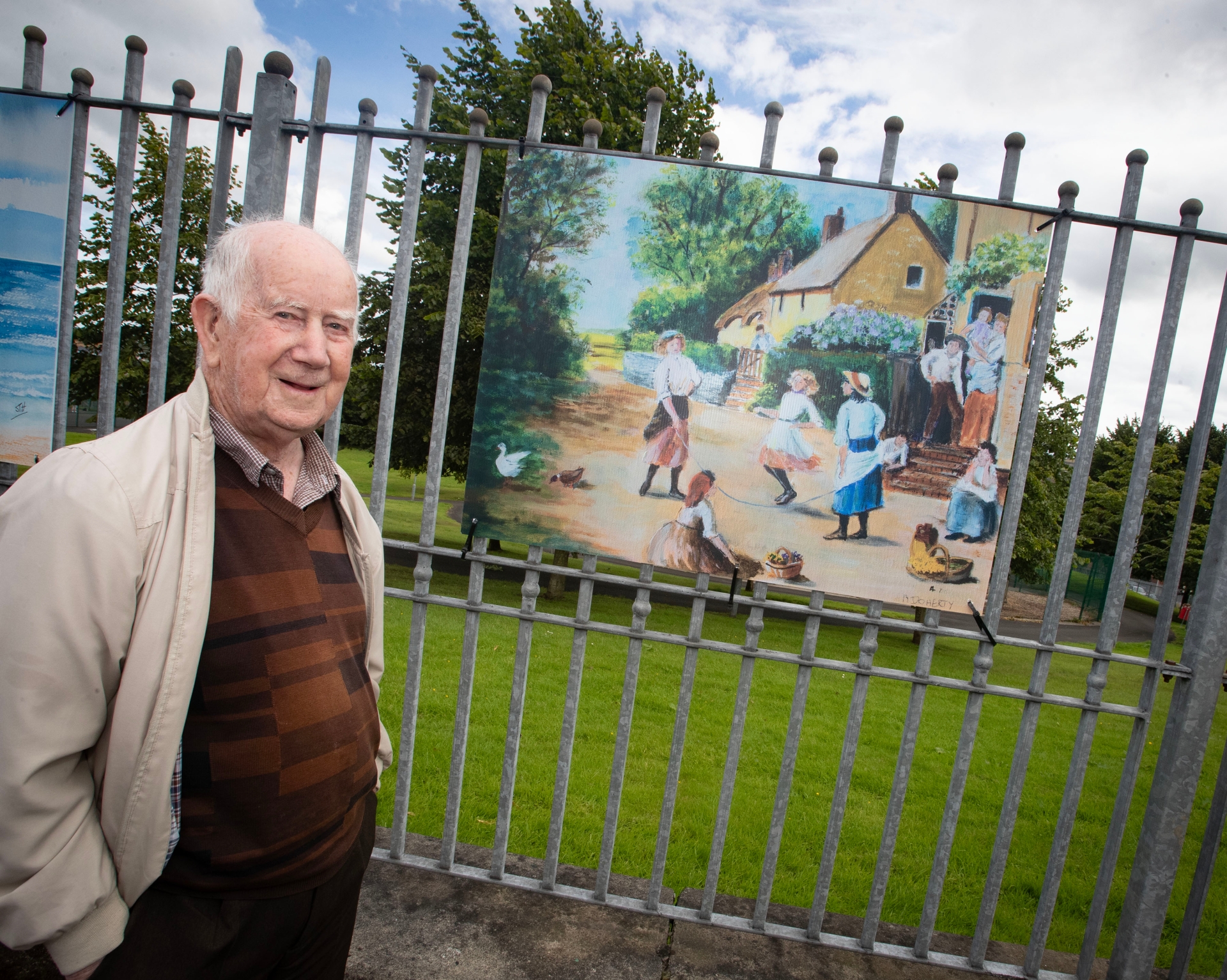 Creggan artist Andy Doherty pictured beside one of his pieces of artwork.