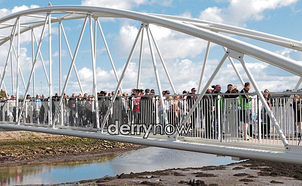 The McGuinness Family leading The Chieftains Walk over Pennyburn Bridge. (Photos - Deirdre Heaney, nwpresspics)