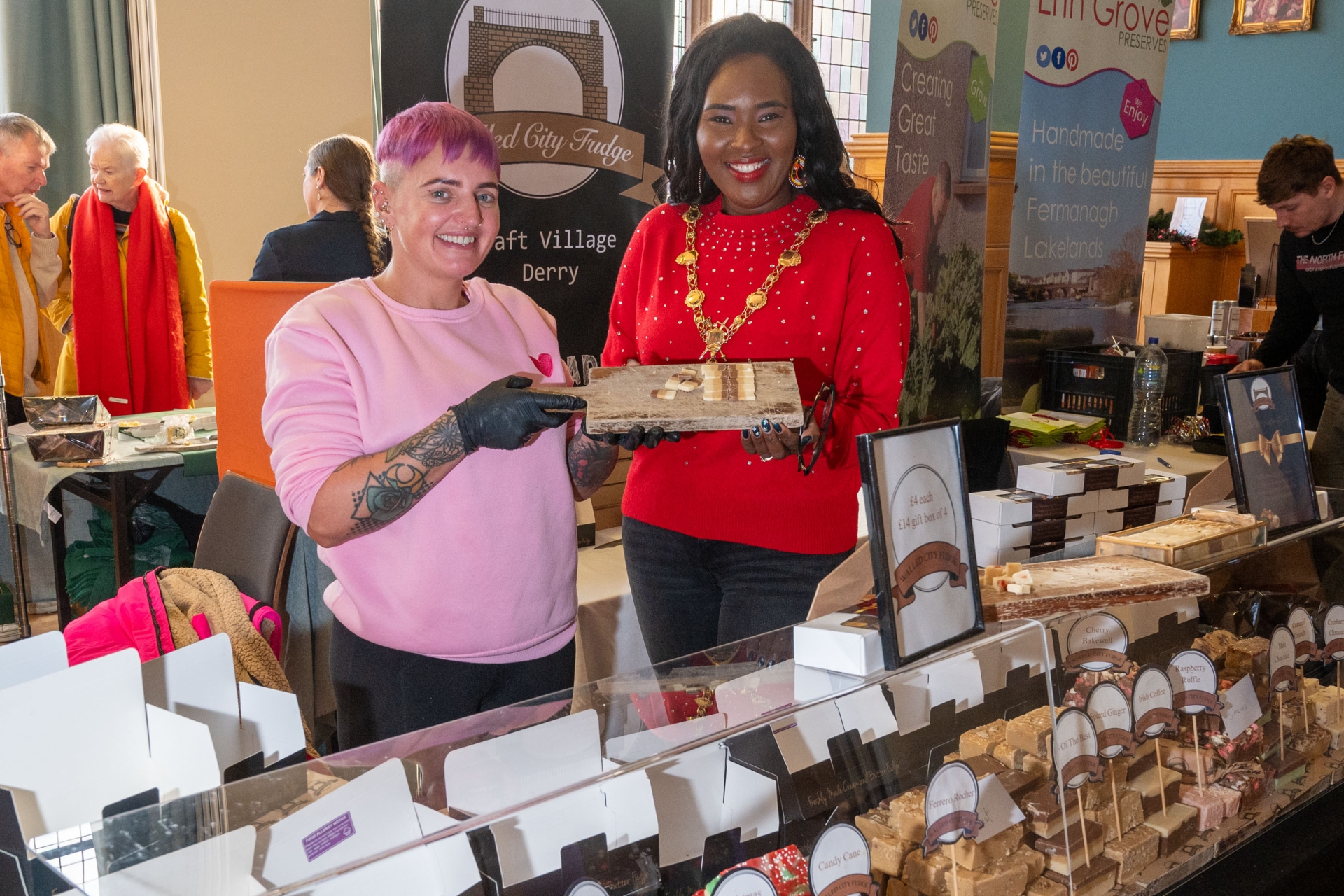 The Mayor, Councillor Lilian Seenoi-Barr pictured with Claire McBride from Maiden City Fudge.