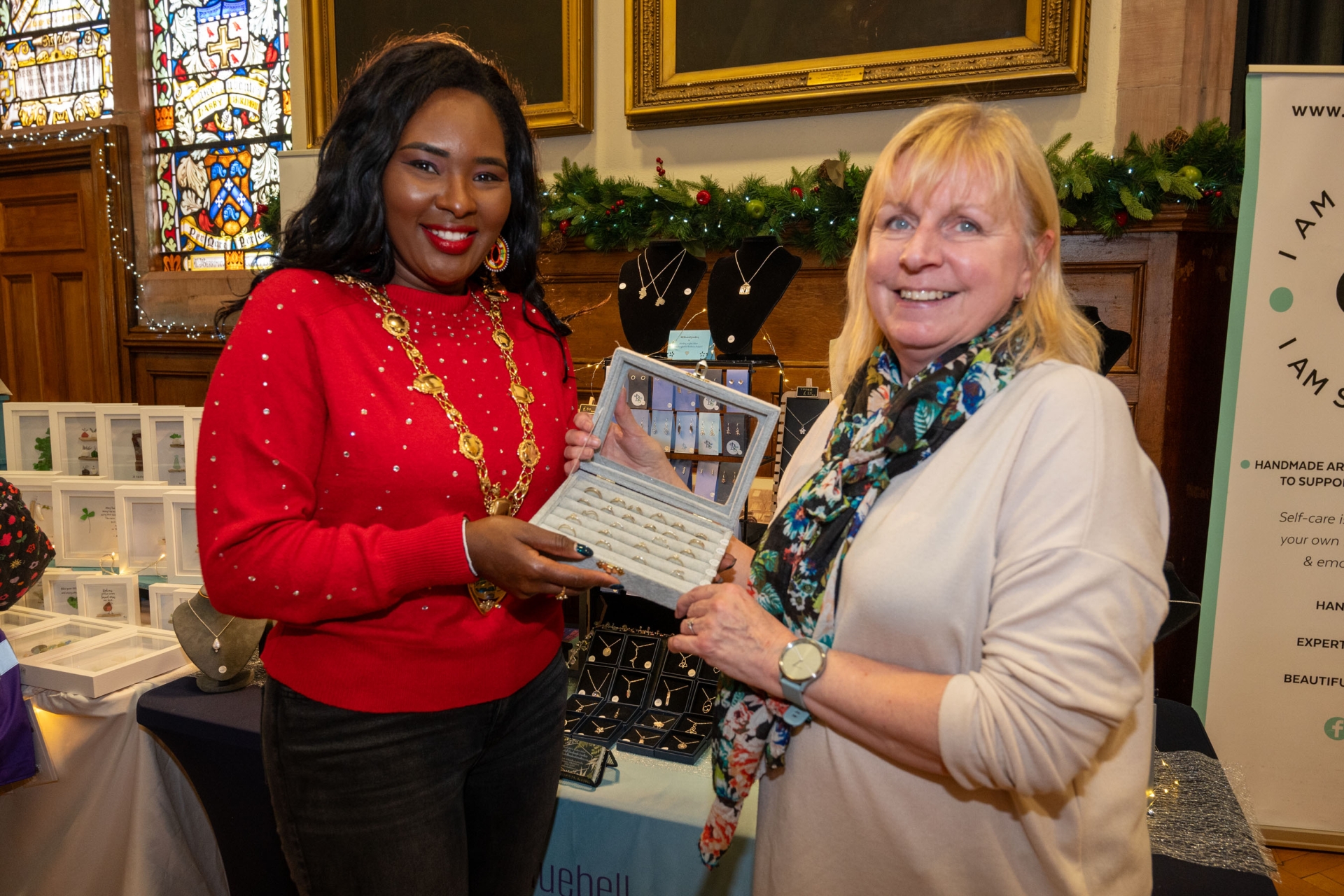 The Mayor, Councillor Lilian Seenoi-Barr pictured with Fiona Adair from Bluebell Handmade Jewellery.