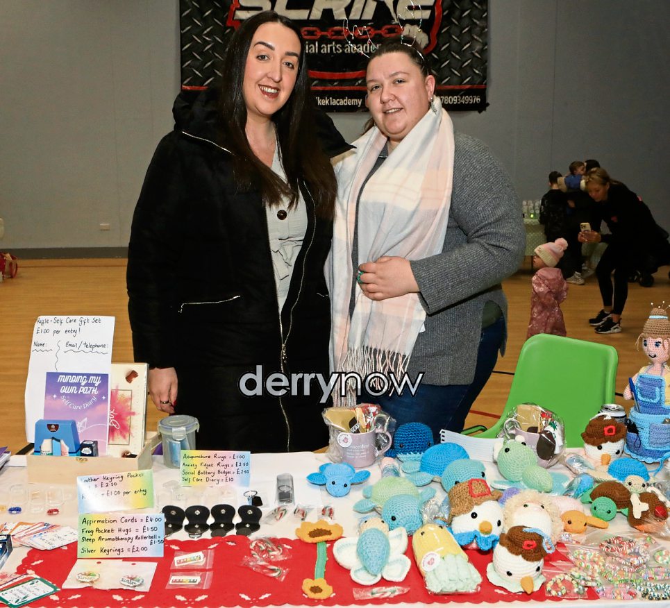 Natalie Cairns "Unity Counselling" with her sister Sabrina "Baby Creations" at their stall at the Christmas Craft Fair held in Shantallow Community Centre. (Photos - Tom Heaney, nwpresspics)