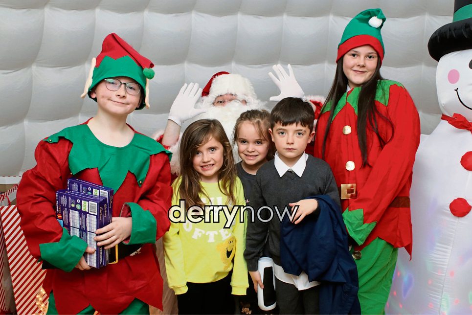 Mabel, Leila and Joey with Santa and his Elves. (Photos - Deirdre Heaney, nwpresspics)