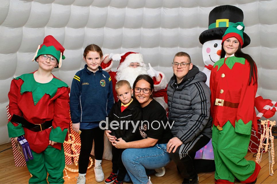 The Wray family pictured with Santa and his helpers at Bishop Street Community Centre Christmas Family Fun Day.