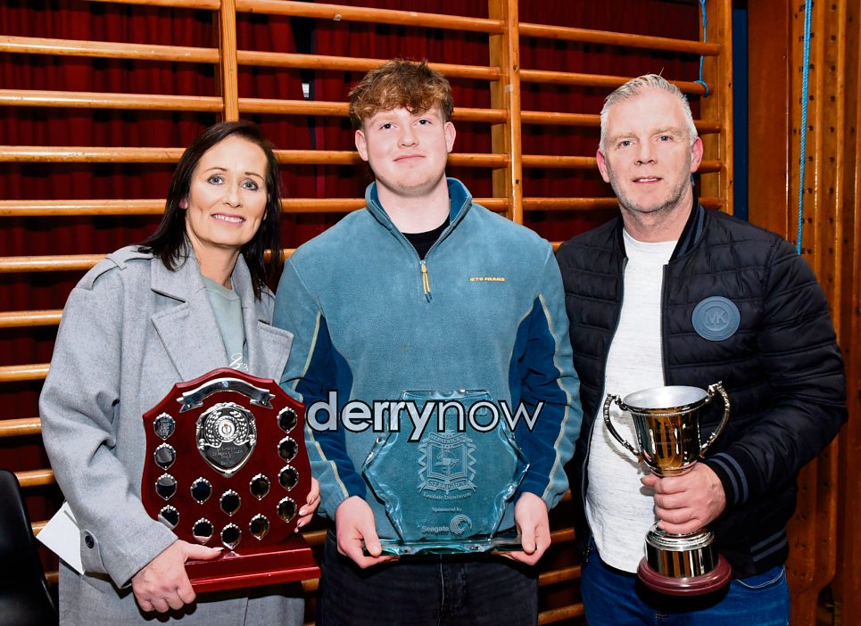 Rory Madden is pictured with his proud parents, Teresa and Gary, at the prizegiving in St Patrick's and St Brigid's College, Claudy.