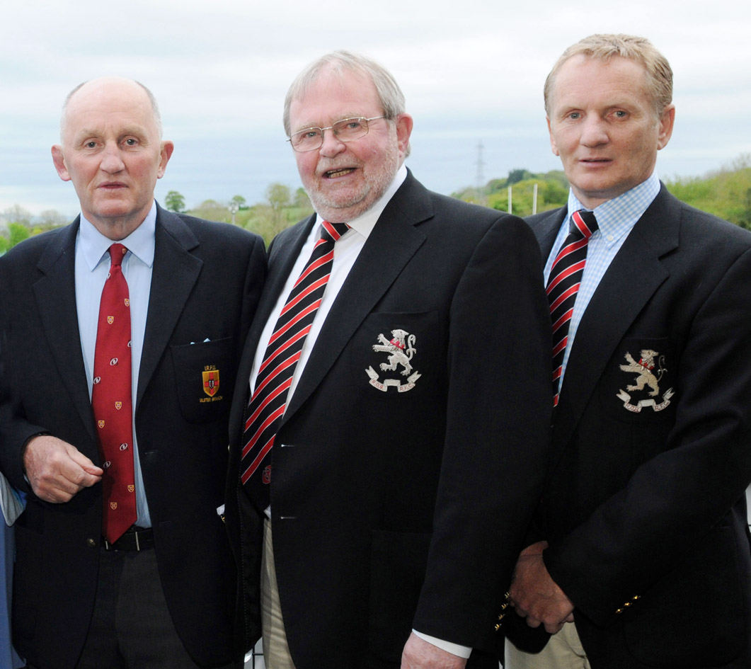 John Kinnear (Ulster Branch), Graffon Parke and Oliver McShane at the Rainey Old Boys annual dinner